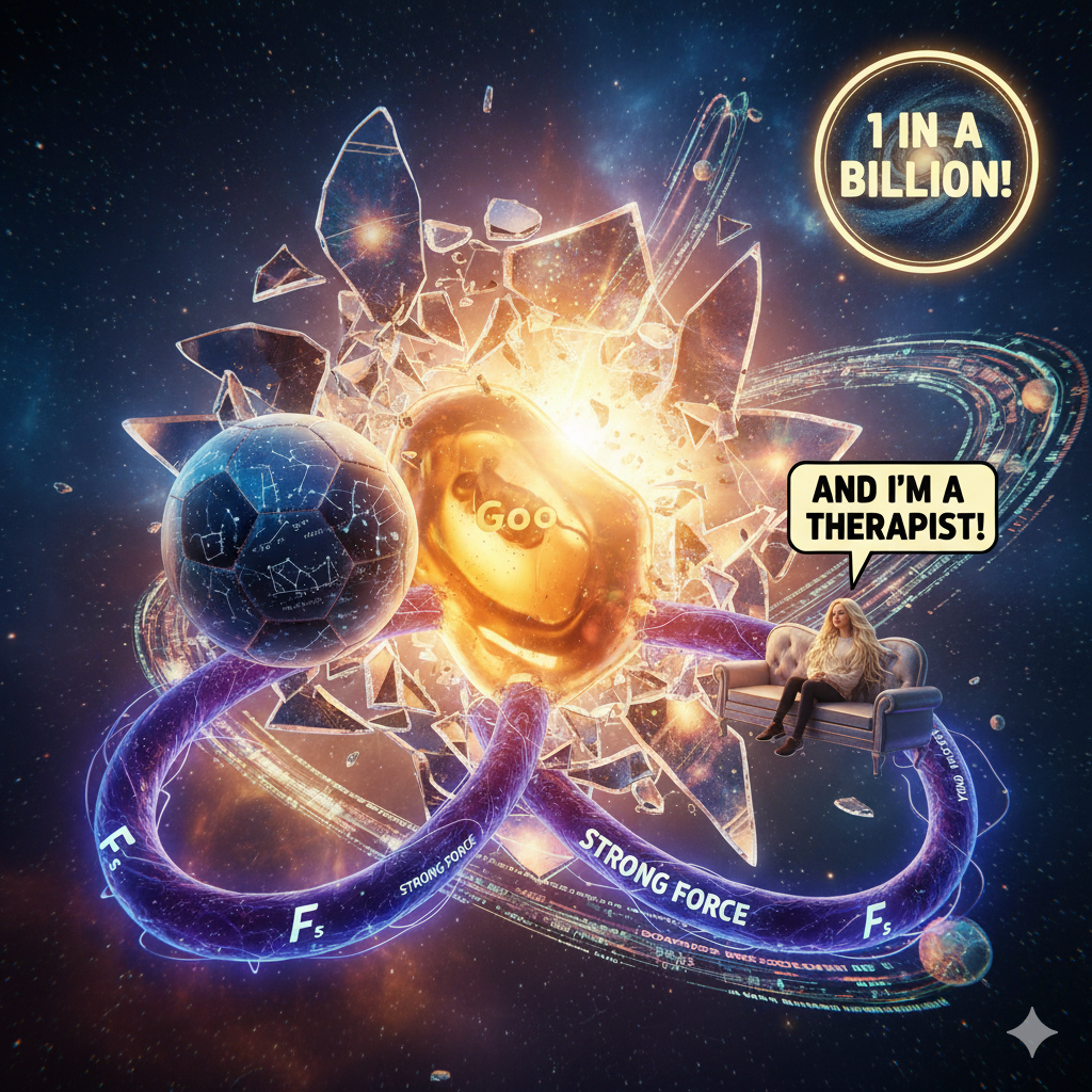 Strong Force: The "Internal Hug." The most powerful force in the universe, using Gluons to bind energy into the knots of your atoms. 137X the power of gravity - it creates your mass and makes embodied life possible.