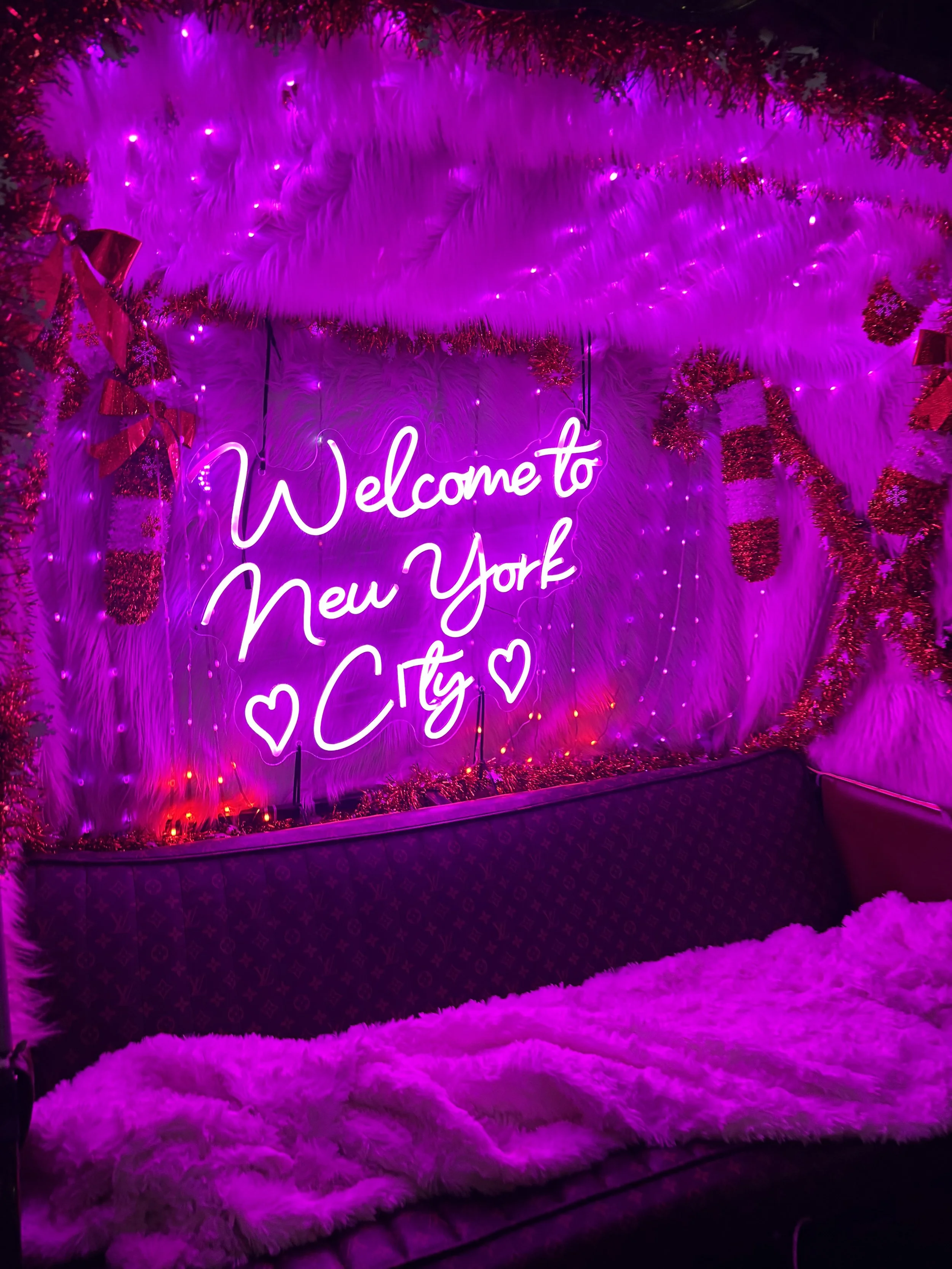 A modern horse and carriage—a big German man dressed as Santa Claus, smoking what smelled like weed, pedaling a carriage through Manhattan—adorned with a ridiculous, misspelled neon pink sign, the word NEW at least spelled correctly. It was absolutely perfect.