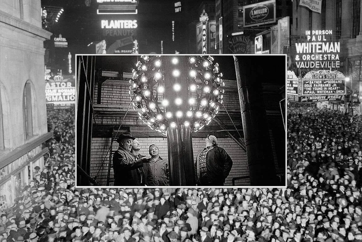 A timeline of the nine iterations of the Times Square New Year’s Eve Ball Drop follows.