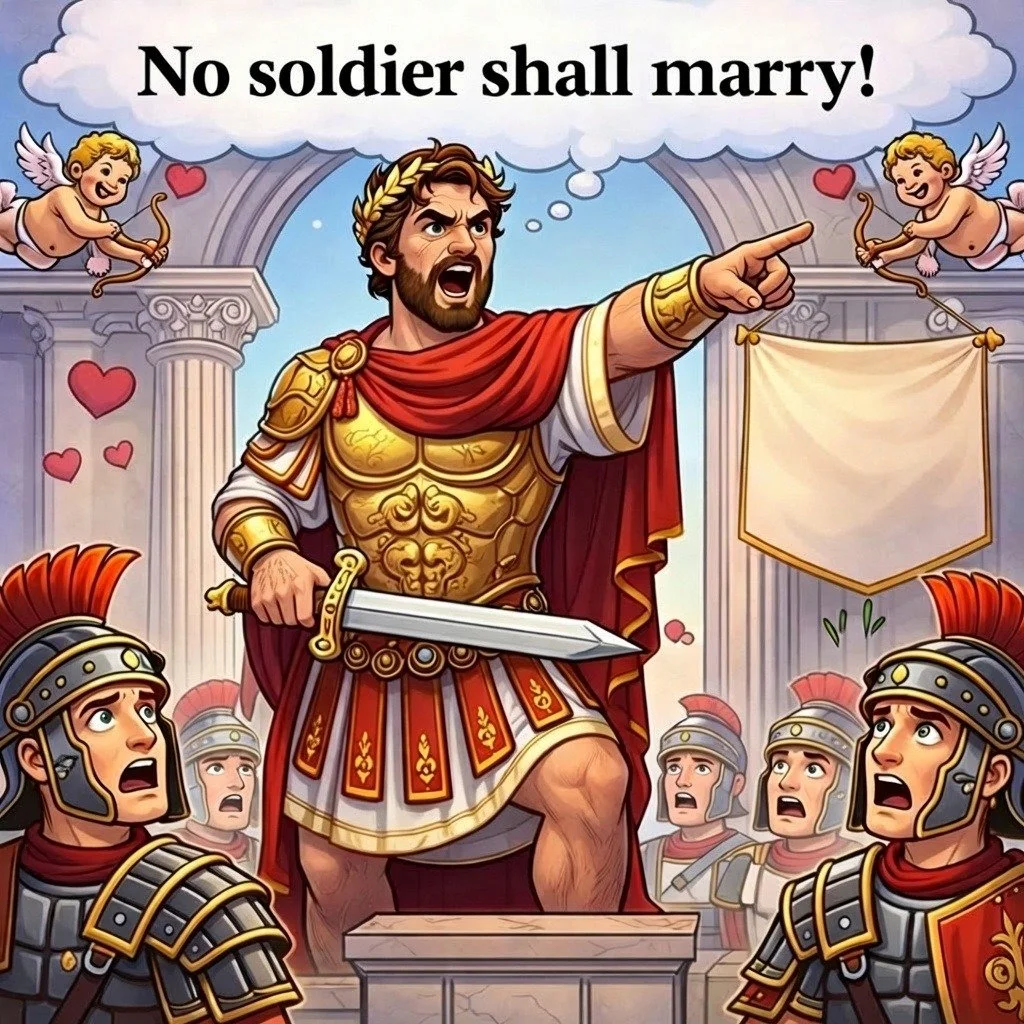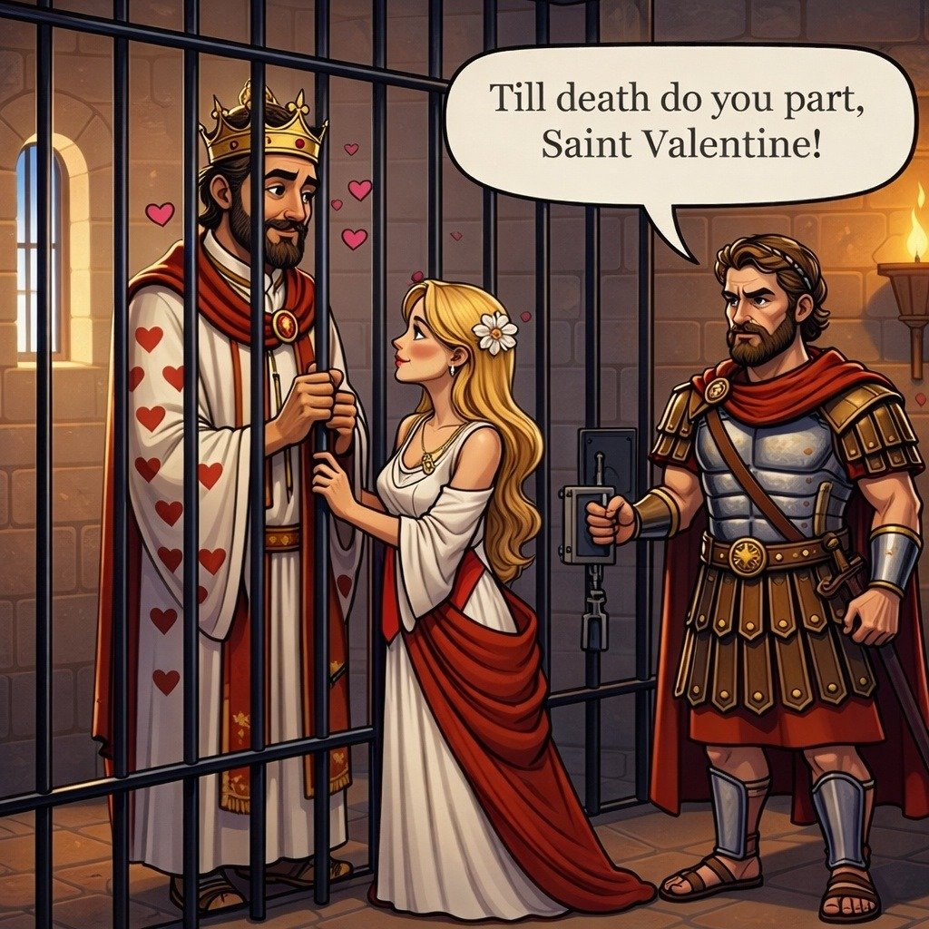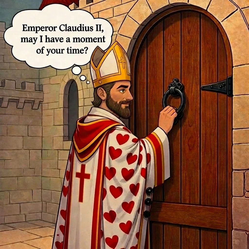 Plot twist… Emperor Claudius II was secretly married—and caught with his bride behind a closed door by Saint Valentine.